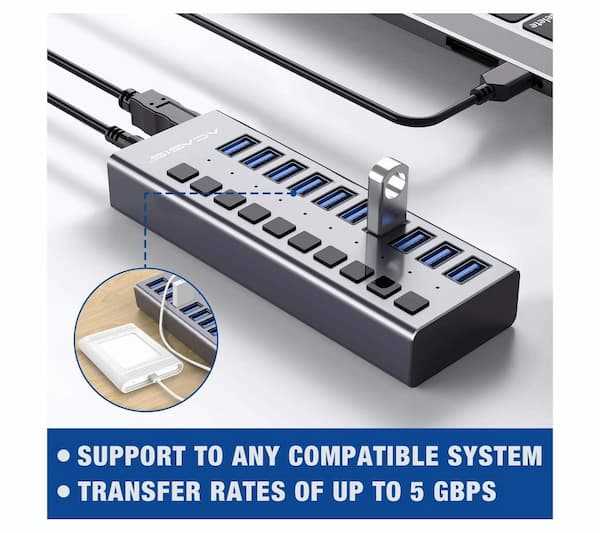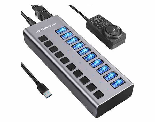 Home Networking USB Hubs Acasis Aluminium 10 Ports USB 3.0 Hub 12V Power Adapter for PC MAC with BC1.2 Charger for Laptop, PC, Computer, Mobile HDD, Flash Drive