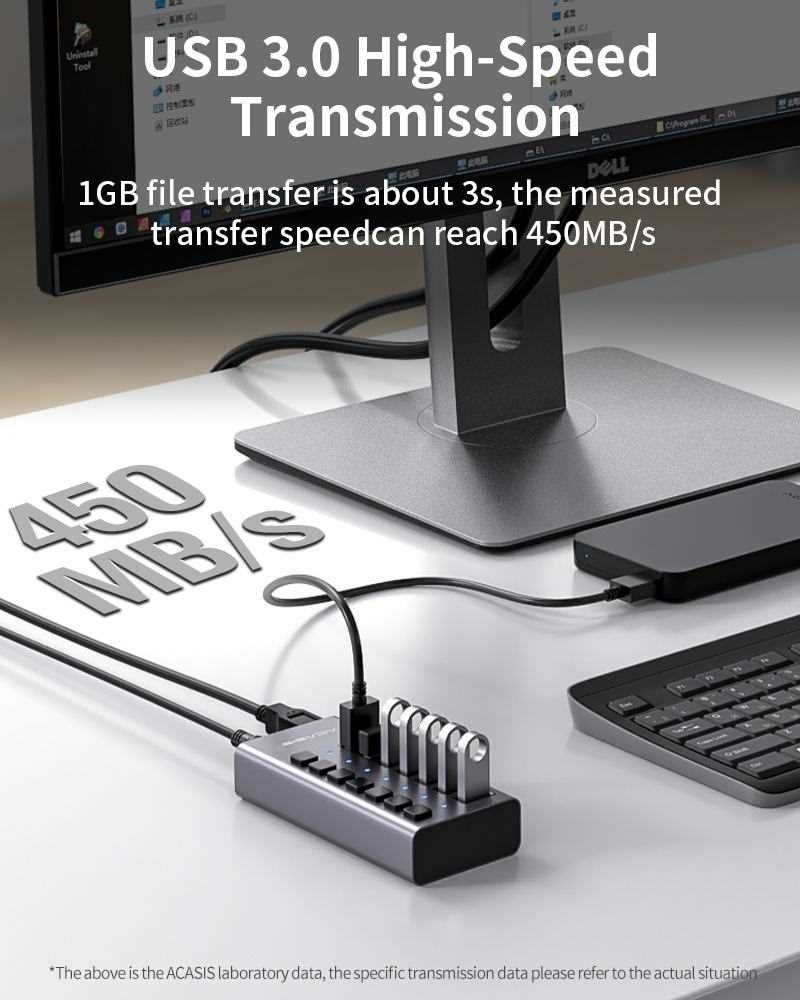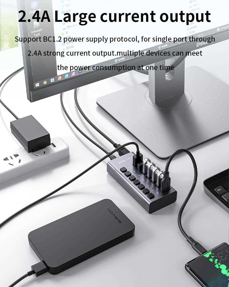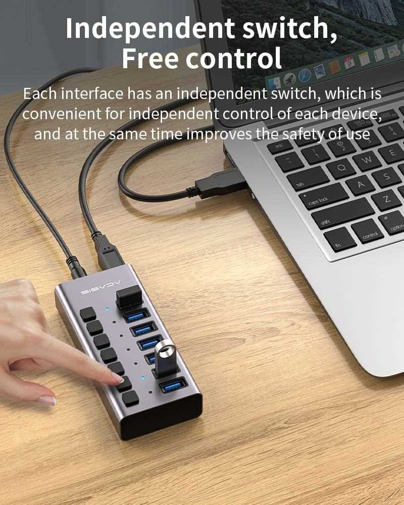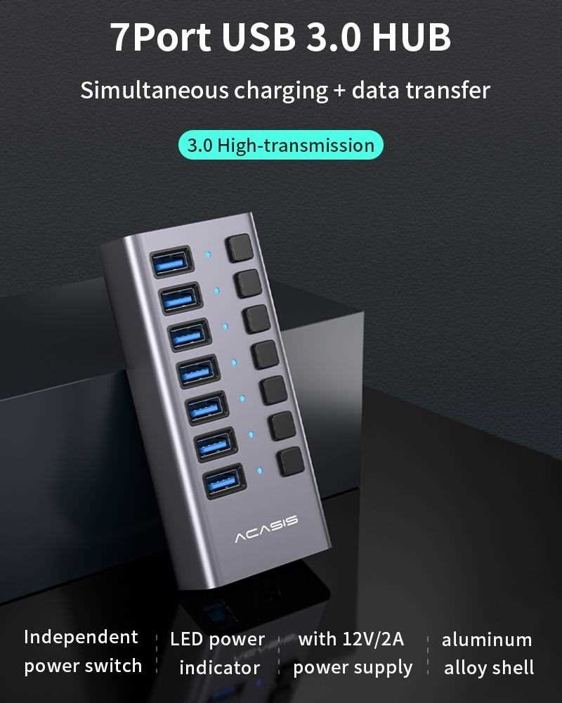 Home Networking USB Hubs ACASIS H707MB 36W 7 Port USB 3.0 Data HUB With Individual On/Off Switches (Aluminium) for Laptop, PC, Computer, Mobile HDD, Flash Drive and More