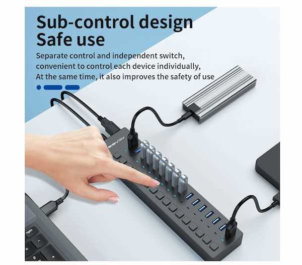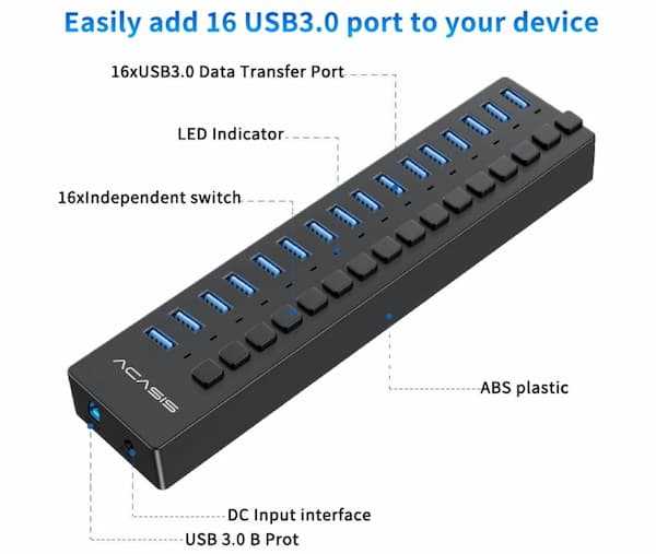 Home Networking USB Hubs ACASIS H716PB 16 Port USB2.0 HUB With Individual On/Off Switch (ABS+Plastic) for Laptop, PC, Computer, Mobile HDD, Flash Drive and More