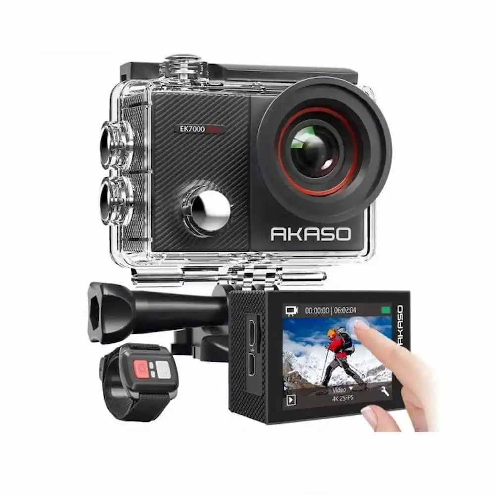 Home Networking Cameras & Surveillance Access Control Akaso EK7000 Pro 4K/25fps, 2.7K/30fps, 1080P/60fps 16MP Action Camera with 2 Touch Screen EIS Adjustable View Angle 40m | Black