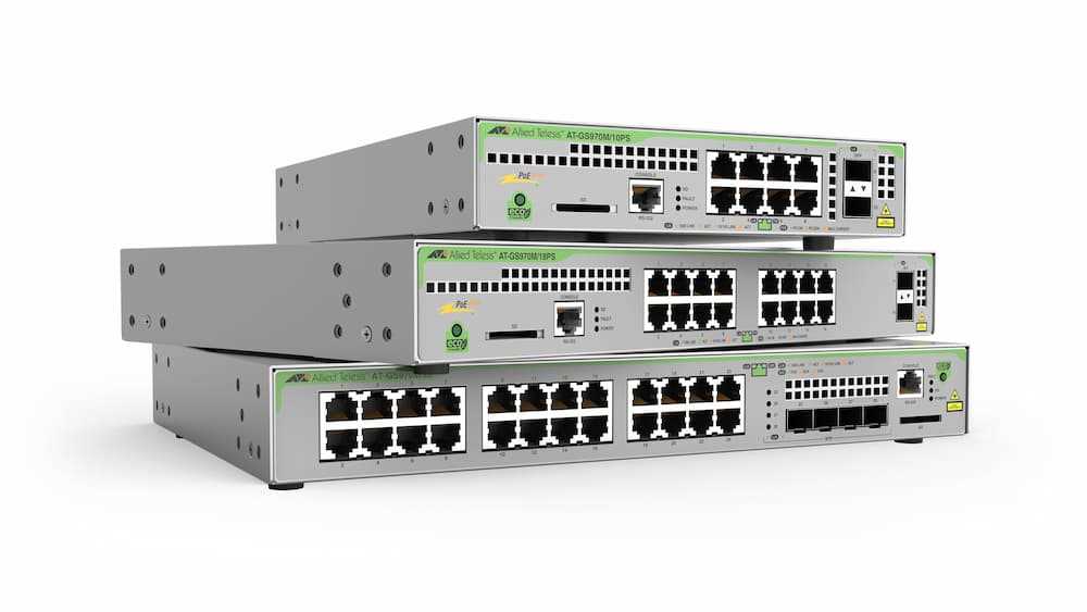 Home Networking Network Switches Allied Telesis AT-GS970M/28PS-30 24 port PoE+ Gigabit Ethernet Ports With 4 port Gigabit SFP Switch (Silver)