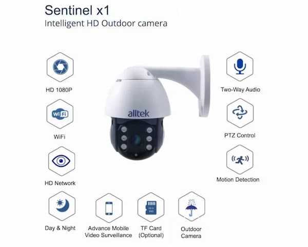 Home Networking Cameras & Surveillance Security Cameras Alltek Sentinel X1 2.0MP 2-Way Audio Outdoor Waterproof IP Camera Wifi Security Night Vision Tracking Intrusion Detection Surveillance