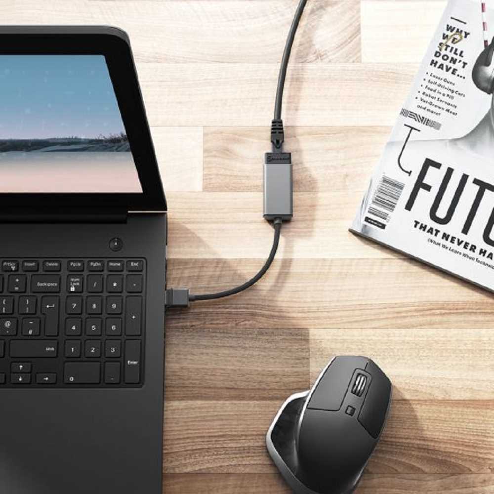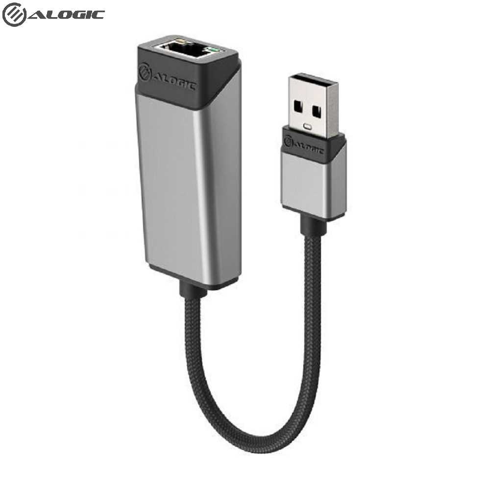Home Networking Power Alogic ULAGE-SGR Ultra USB-A USB 3.0 To RJ45 Gigabit Ethernet Adapter (15cm)- Black & Grey