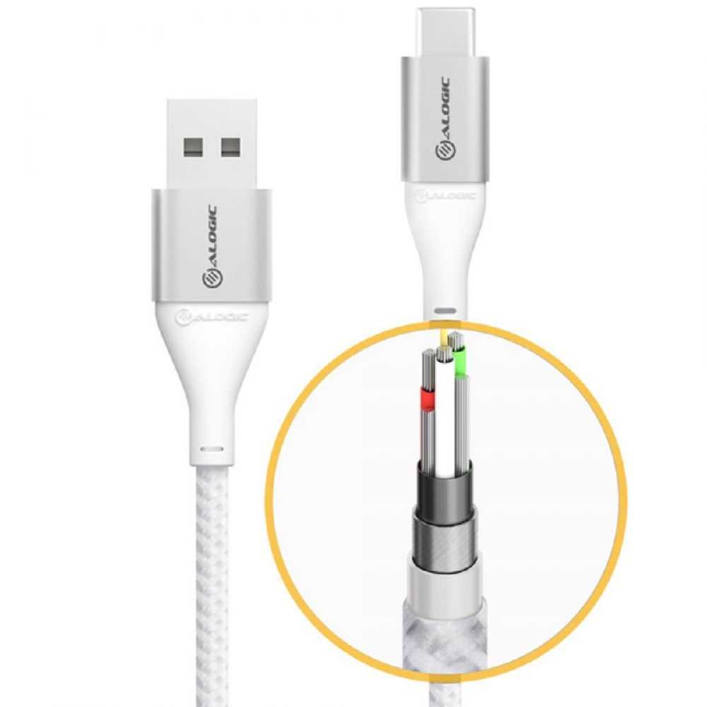 Home Fiber Optic Cables Fiber Pigtails Alogic ULCC203-SLV Super Ultra USB 2.0 USB-C to USB-C 5A/480Mbps Cable (3 Meter)- Silver