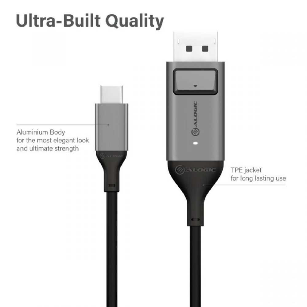 Home Networking Power Alogic ULCDP01-SGR Ultra Series USB-C (Male) to DisplayPort (Male) Cable (Space Gray, 1 Meter)