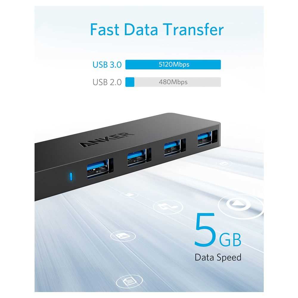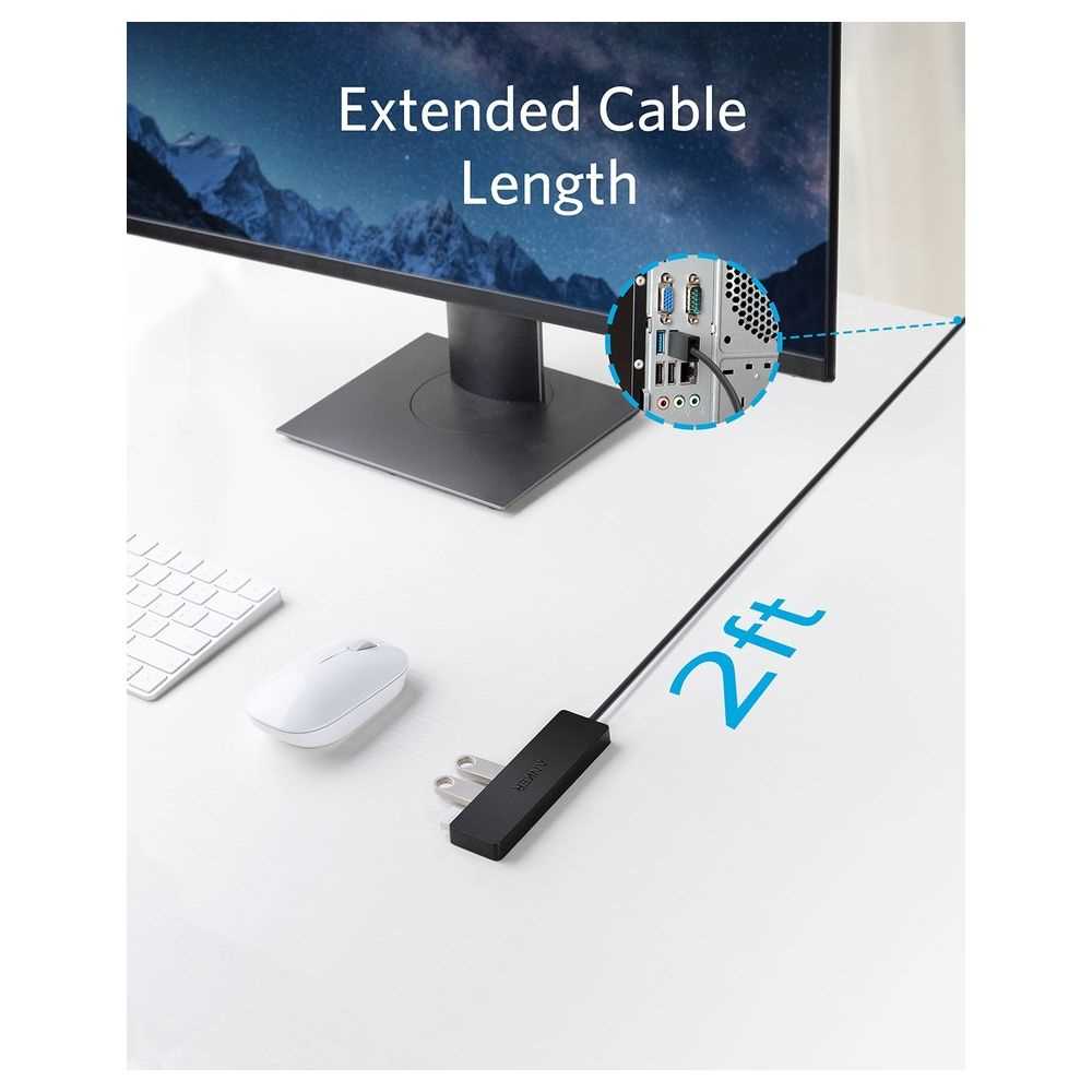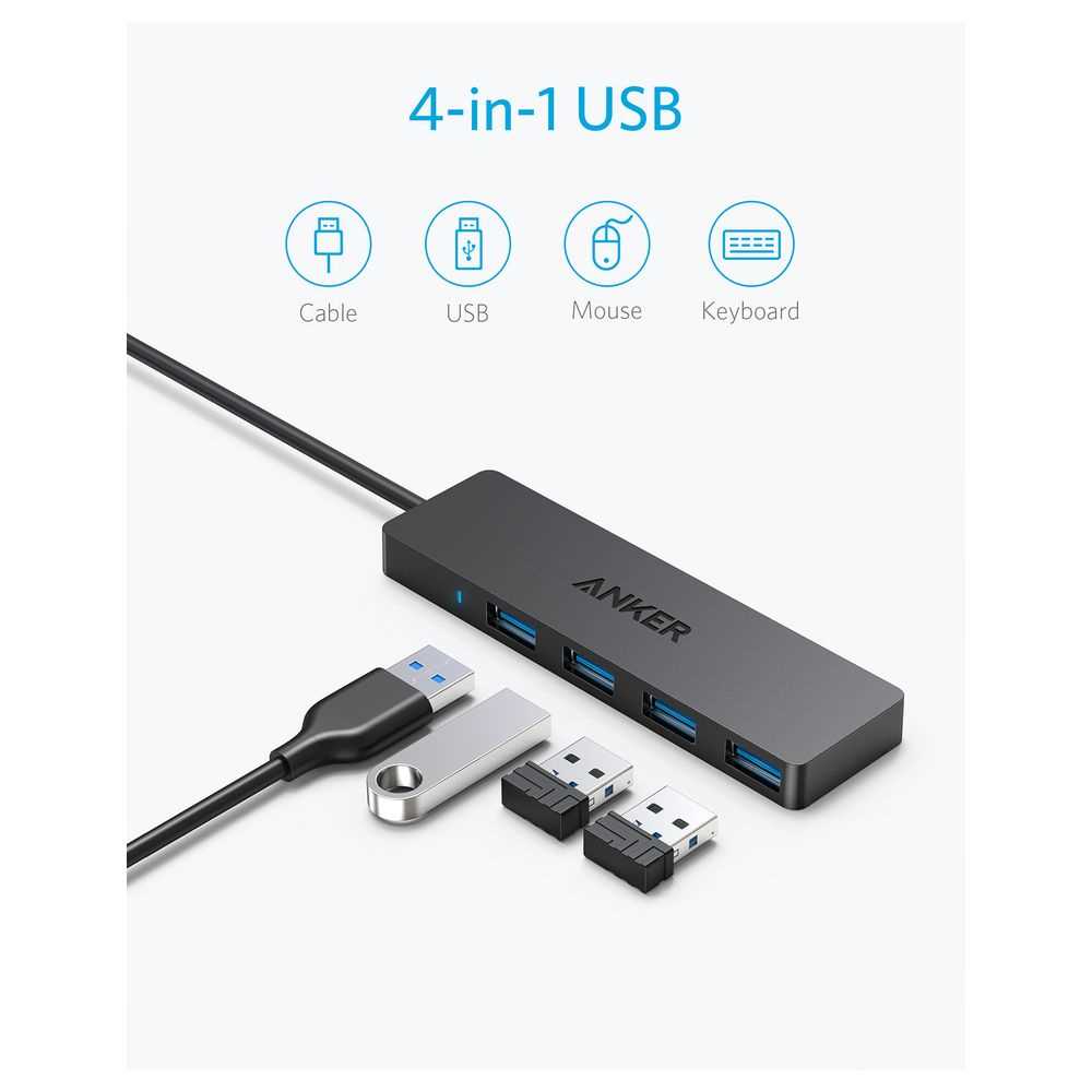 Home Networking USB Hubs Anker 4 Port USB 3.0 Ultra Slim Data Hub 2Ft (Black)