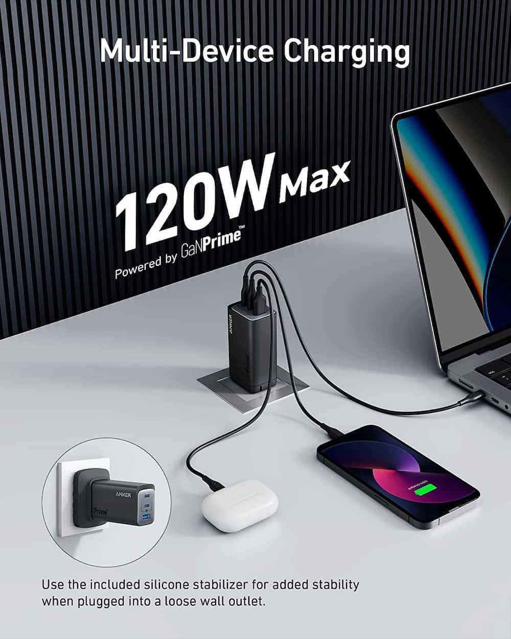 Home Networking Power Anker 737 GaNPrime 120W USB C Charger PPS 3-Port Fast Compact Foldable Wall Charger for MacBook Pro/Air, iPad Pro, Galaxy S22/S21, Dell XPS 13, Note 2...