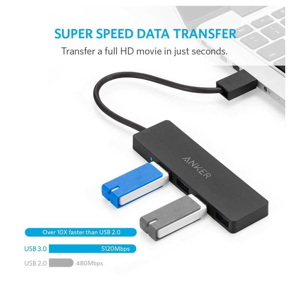 Home Networking USB Hubs Anker A7516011 4-Port USB 3.0 Ultra Slim Data Hub (Black)