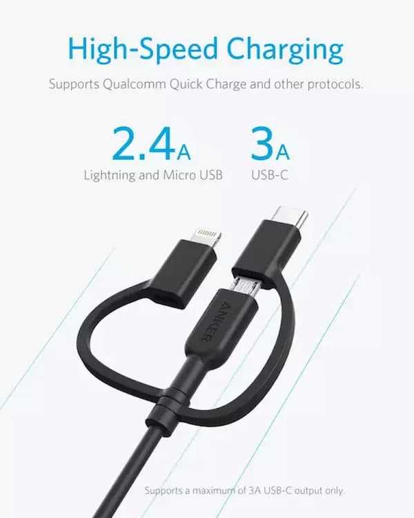 Home Networking Power Power Cords Anker Powerline II 3-in-1 USB Cable 3ft ( Lightning / Type C / Micro ) for iPhone 11/Xs/XS Max/XR/X/8, Samsung Galaxy S20/S20+/S20 ULTRA/S10, Huawei M...