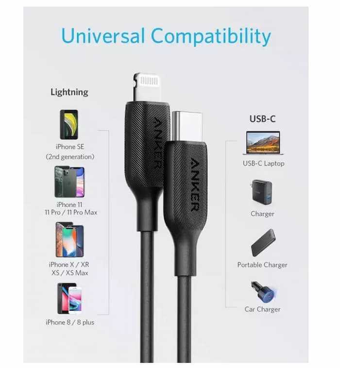 Home Fiber Optic Cables Accessories Anker Powerline III USB C to Lightning Cable (3 ft) MFi Certified Fast Charging Lightning Cable for iPhone 11 Pro 11 Pro Max X XS XR Max 8 Airpods Pro
