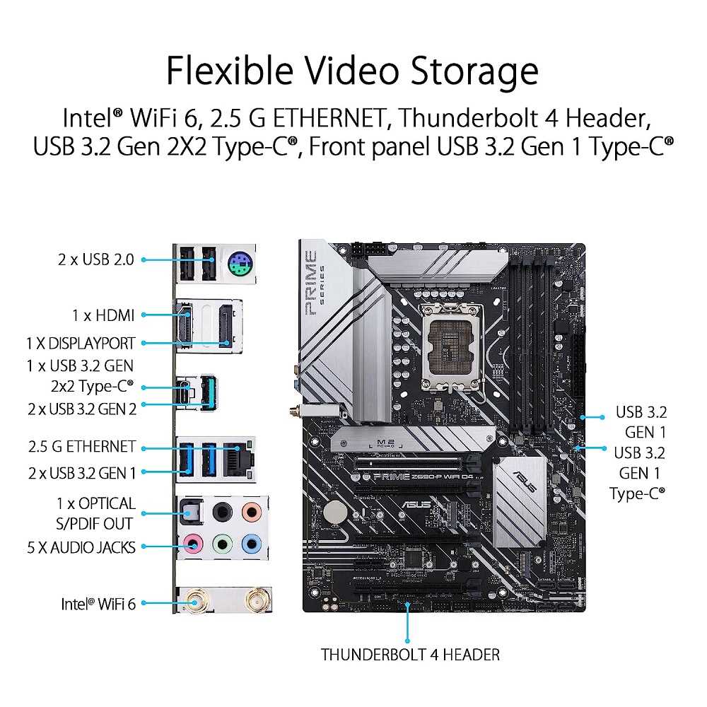 Home WDM, OTN & PON Transponders & Muxponders Asus Prime Z690-P WiFi D4 LGA 1700 (12th Gen Intel Core) ATX Motherboard with PCIe 5.0, Three M.2 Slots, DDR4, 2.5 Gb LAN, HDMI, DP, USB 3.2 Type-C an...