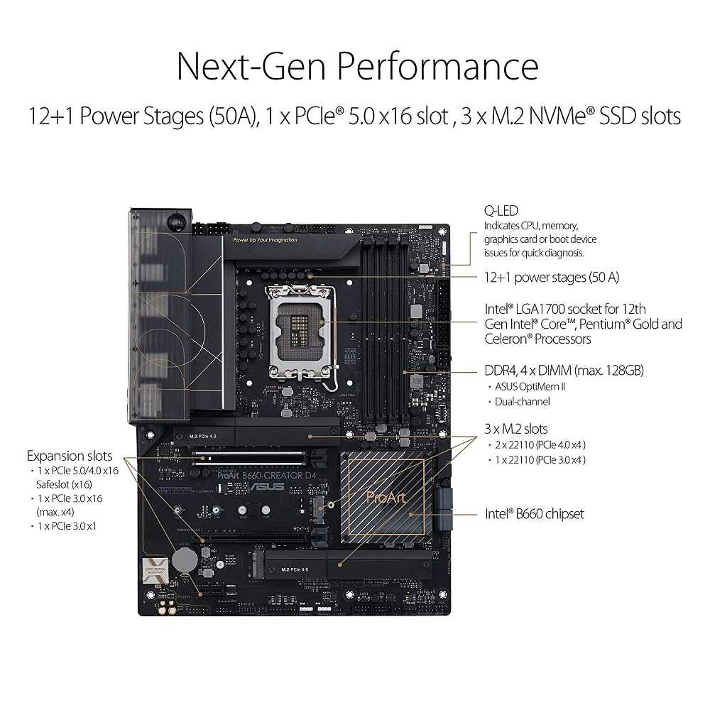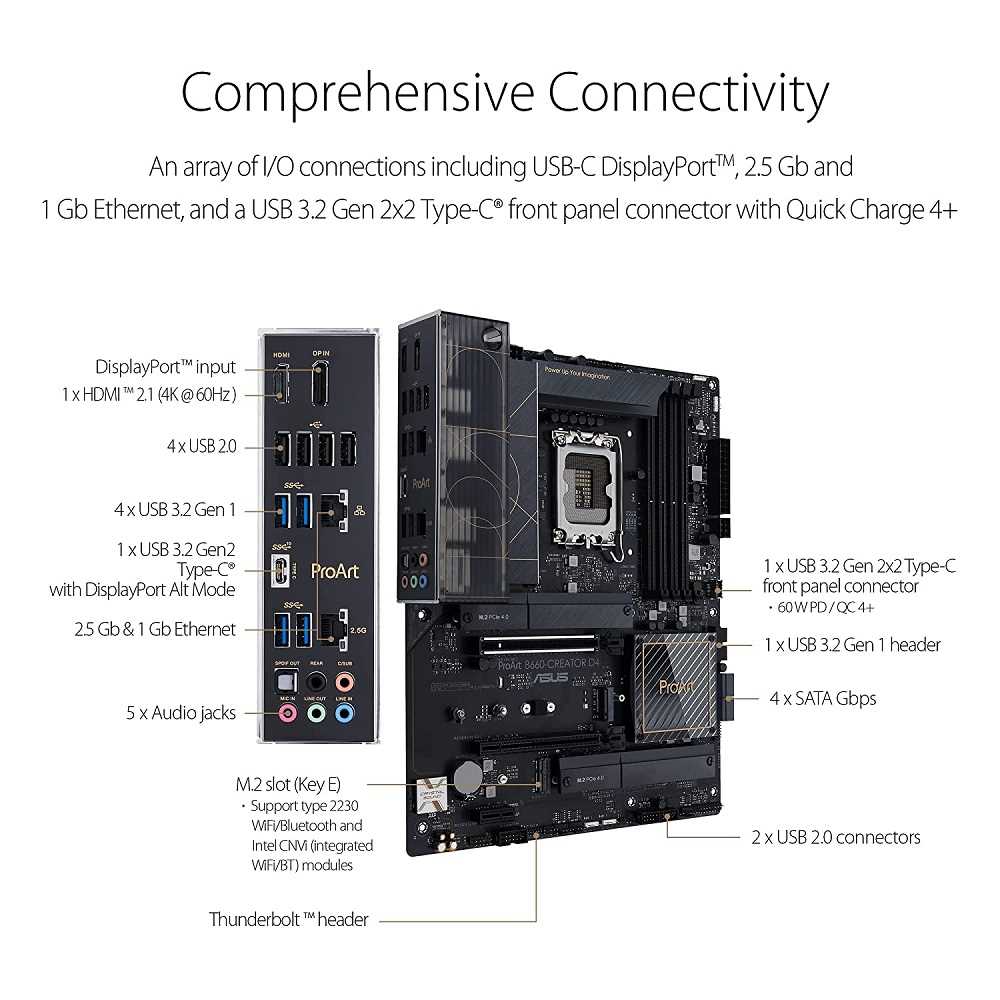 Home WDM, OTN & PON Transponders & Muxponders Asus ProArt B660-Creator D4 Motherboard with Intel B660 (LGA1700) ATX, 12+1 Power Stages (50 A), PCIe 5.0, DDR4, USB-C DisplayPort, 2.5 Gb and 1 Gb Et...