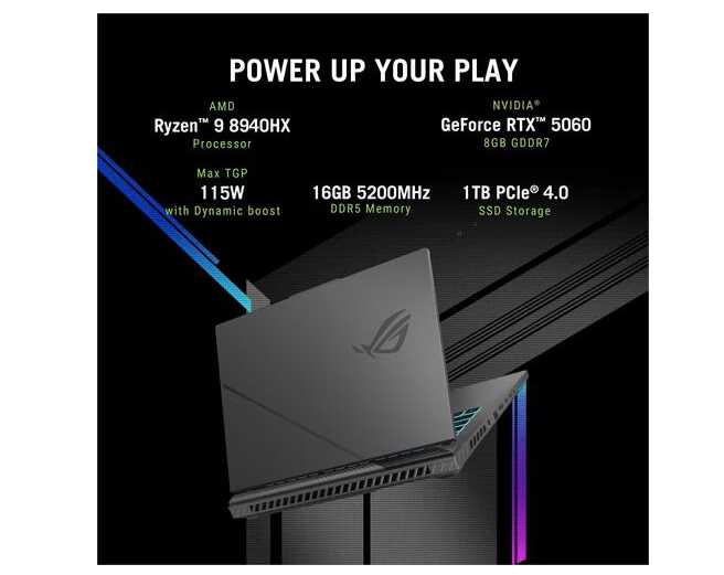 Home Electronics Laptop ASUS ROG Strix G16 Ryzen 9 RTX 5060 32GB 1TB 240Hz 16" Gaming Laptop (Eclipse Gray) (90NR0KW7-M00400)