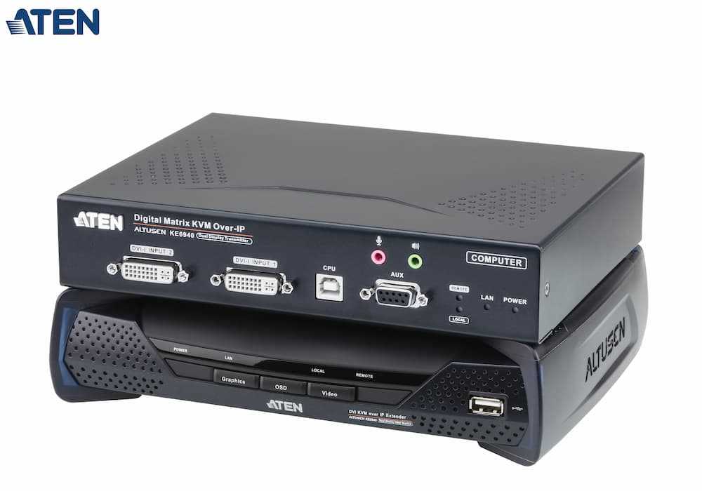 Home Networking Network Switches ATEN KE6940 USB DVI-I Dual Display KVM Over IP Extender (Black)