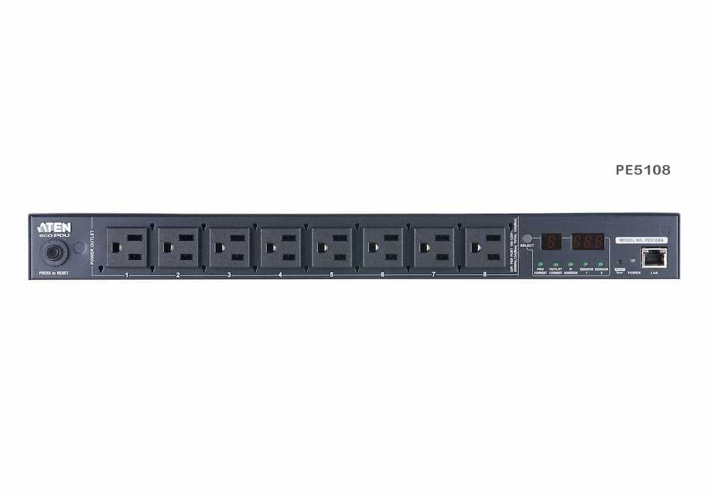 Home Networking Power Metered Rack PDUs Aten PE5108 15A/10A 8-Outlet 1U Metered Eco PDU (Black)