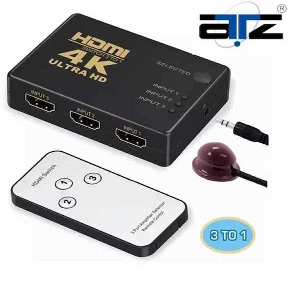 Home Networking Power ATZ 3-to-1 HDMI 4K Charger Switch with Remote Control- Black