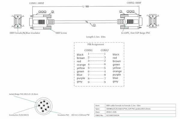 Home Networking Power ATZ DB9FFxxM-NM DB9F/F Null Modern Cable (1.8 Meter, 3 Meter, 5 Meter)