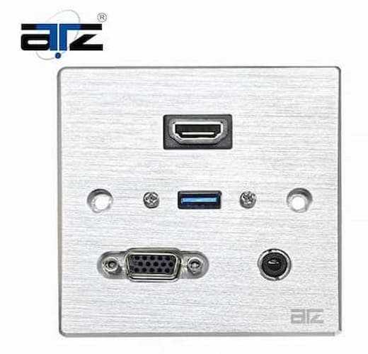 Home Networking Network Switches ATZ A9 HDMI VGA USB 3.0 Face Plate 86x86mm (Silver)