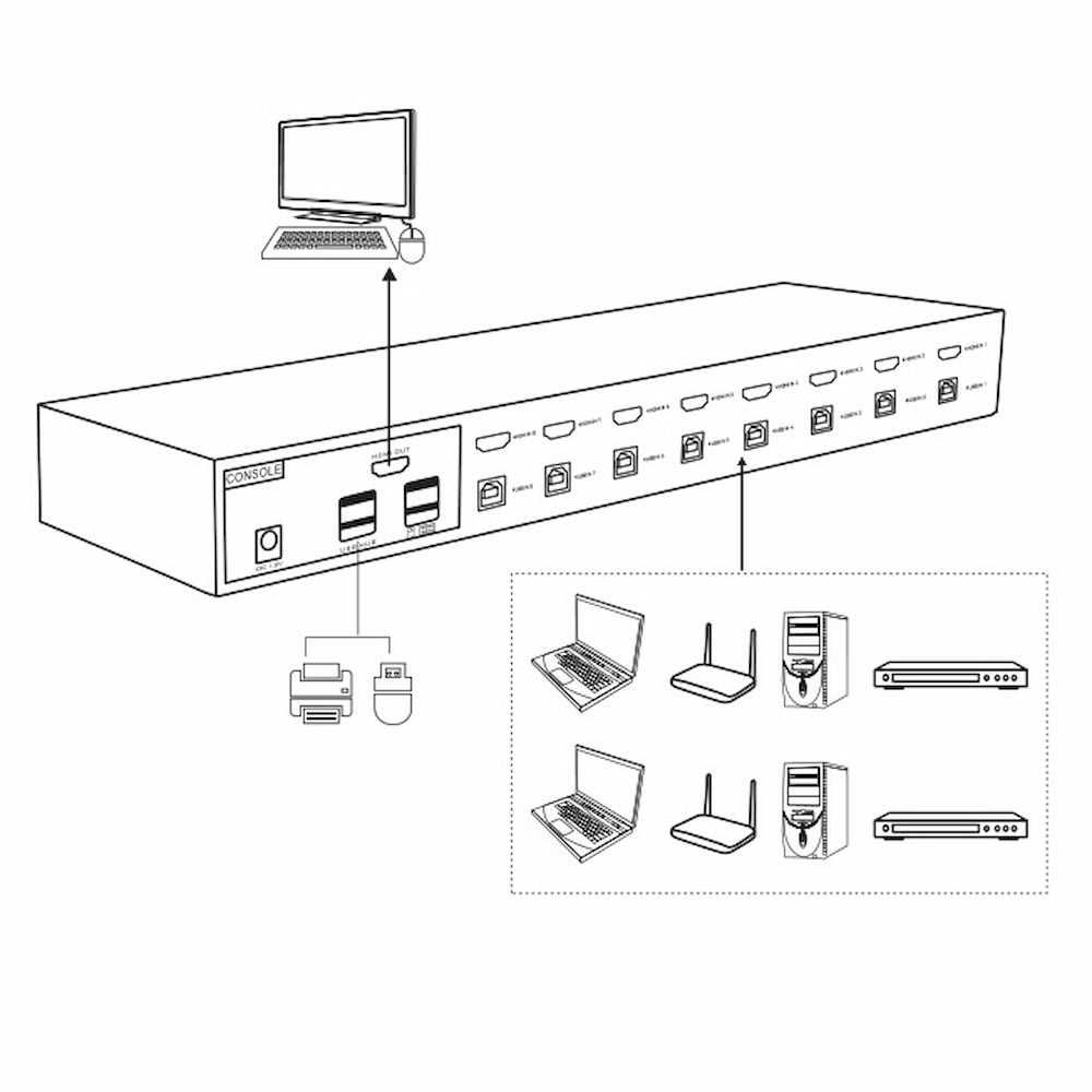 Home Networking Network Switches ATZ KC18HL 8-port HDMI USB 2.0 KVM Switch c/w 8x KVM/USB Cables