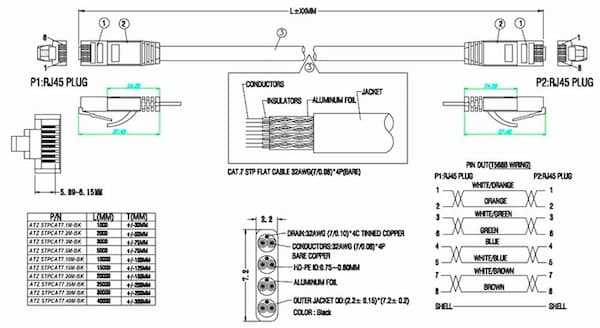 Home Networking Power ATZ STPCAT7.xxM.BK CAT.7 STP Sheilded Flat Pactcord with Gold Plated RJ45 Cable- (Black)