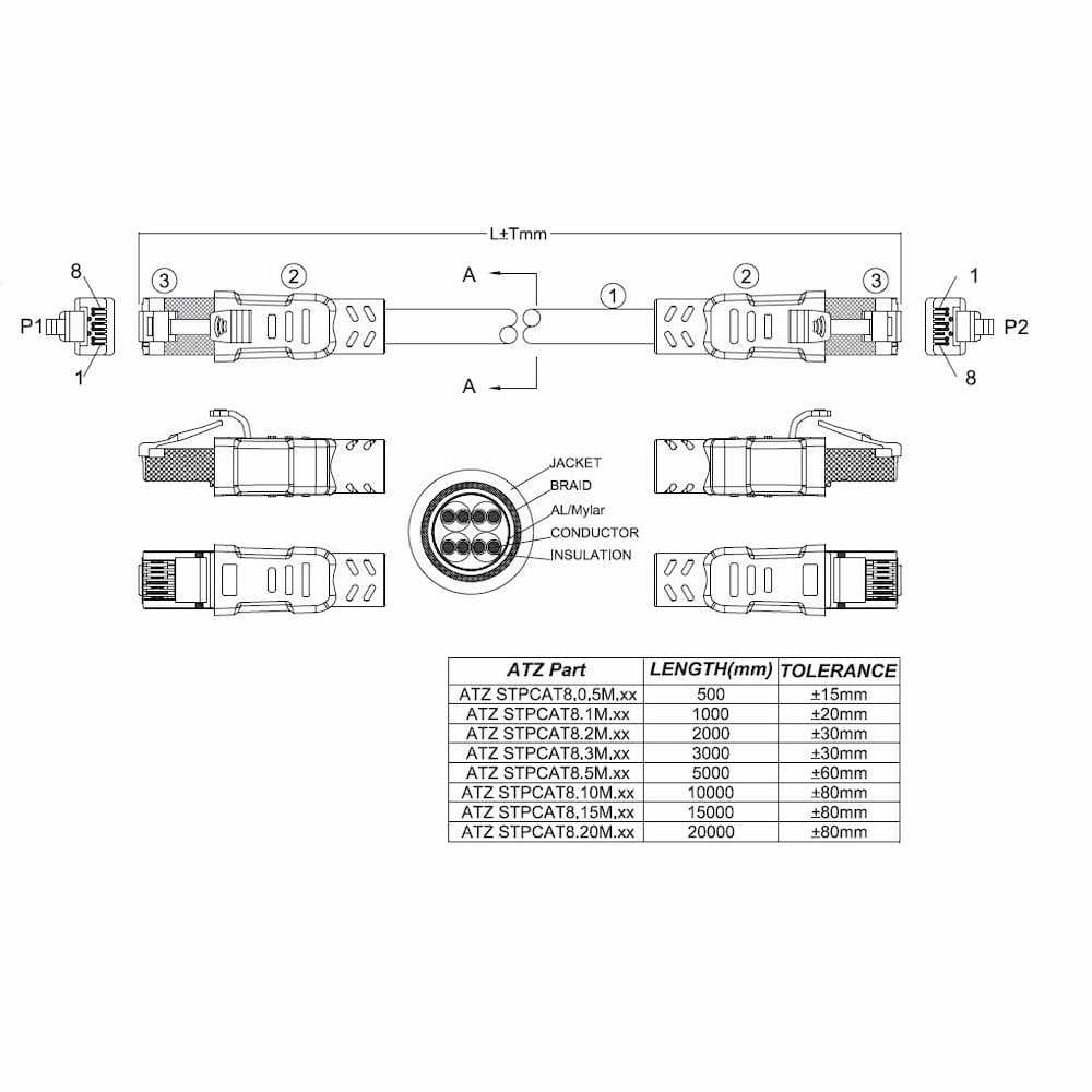 Home Networking Power ATZ STPCAT8.30M.BK Cat.8.1 S/FTP High quality 24AWG LSZH Solid Copper 40G Patchcord - 30M (Black)
