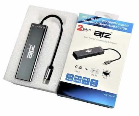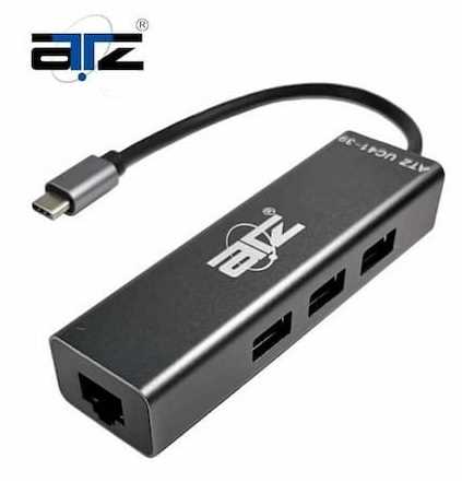 Home Networking Power ATZ UC41-39 USB-C to RJ45 Gigabit LAN Adapter with 3 Port USB 3.0 Hub