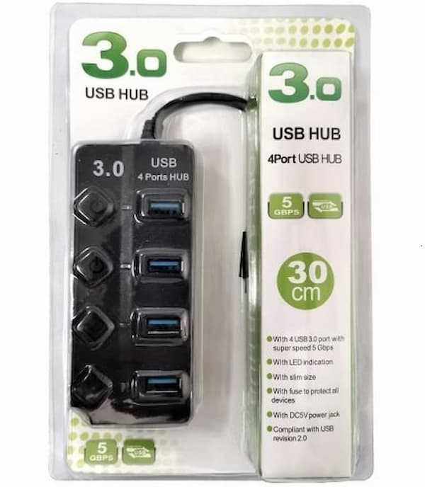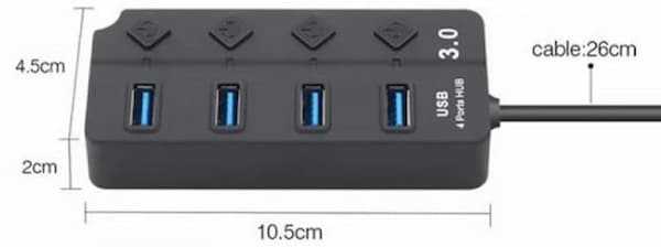 Home Networking USB Hubs ATZ UH304 USB 3.0 4-Port Hub with Individual Switches & LED Indicators - High-Speed Expansion