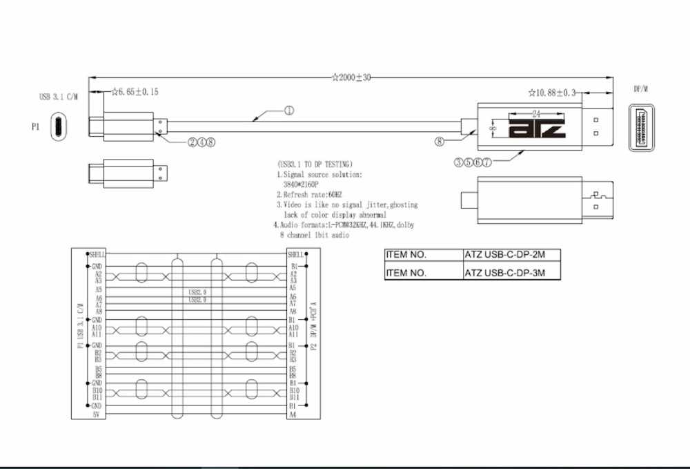 Home Networking Power ATZ USB-C-DP-xM USB Type-C to Displayport 1.2 Cable W/Gold Plated Connector (1.5M/ 2M/ 3M)