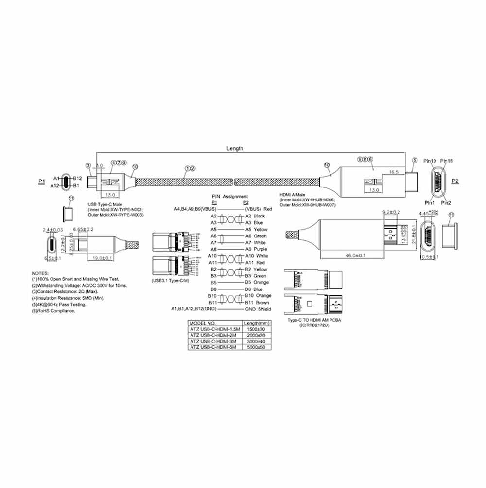 Home Networking Power ATZ USB-C-HDMI-xxM USB Type-C to HDMI Cable 4K@60Hz (1.5M/ 3M/ 5M)