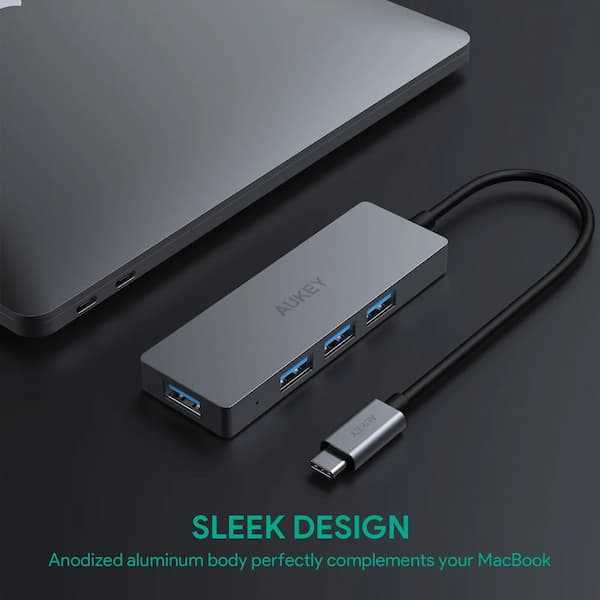 Home Networking USB Hubs Aukey CB-C62 USB C to 4 Port USB 3.1 Aluminium HUB (Grey)