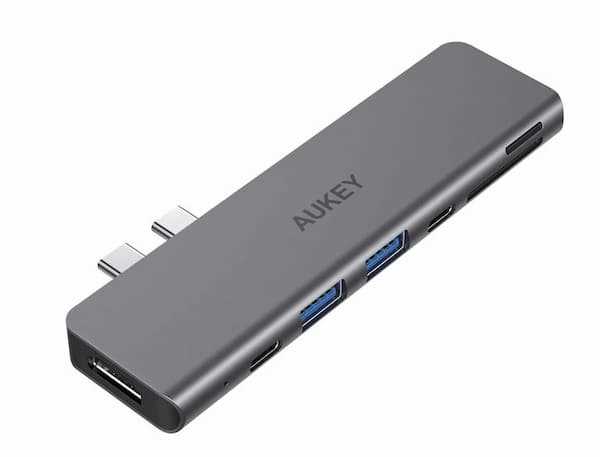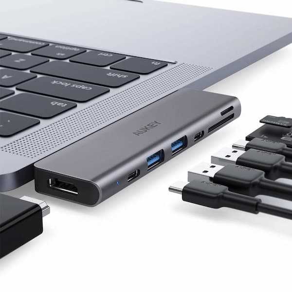 Home Networking USB Hubs Aukey CB-C76 Type C to USB 3.0 7-in-1 Thunderbolt 3 Hub (Grey)