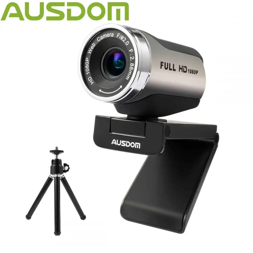 Home Networking Conferencing, Phones Ausdom AW615S 1080P Webcam with Tripod Stand, USB Plug & Play, Microphone (Grey)