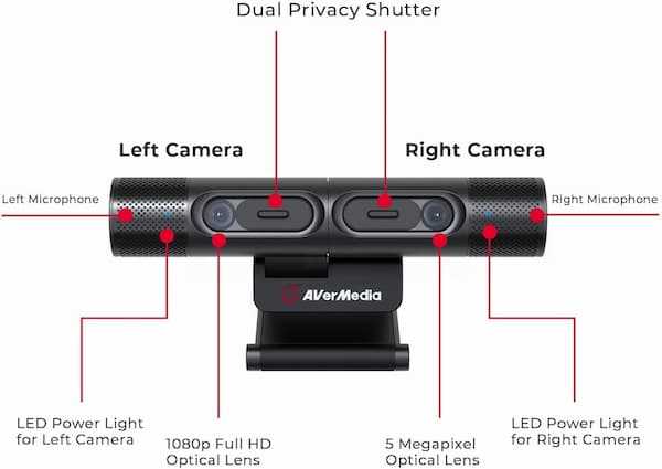 Home Networking Conferencing, Phones AverMedia PW313D DualCam Webcam with 2 Cameras for Virtual Classroom, Web Conferencing, Live Demo & Works with Zoom, Teams, Skype, Includes Tripod