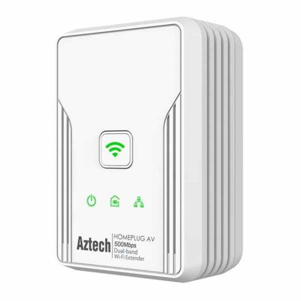 Home Networking Network Adapter Aztech HL117EW 500Mbps Powerline Adapter with Wireless N300 Dual Band Extender