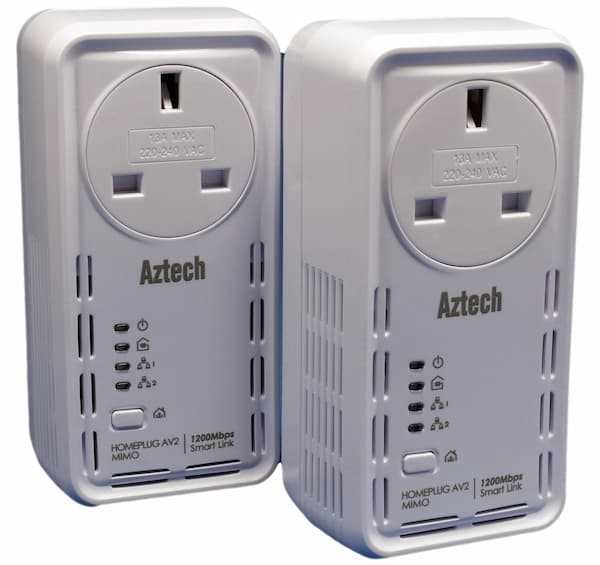 Home Networking Network Adapter Aztech HL129EP HomePlug AV2 1200Mbps Powerline Adapter with Pass Through Smart Link