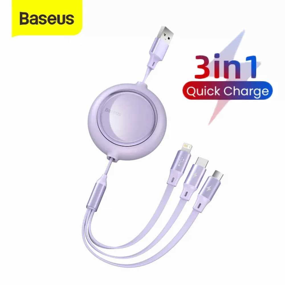 Home Fiber Optic Cables Fiber Pigtails Baseus 3 in 1 Retractable USB Cable For iPhone 12 Pro Max 5A USB Micro Type C Quick Charging Cable For Samsung Huawei Vivo Oppo Xiaomi Realme - White/...