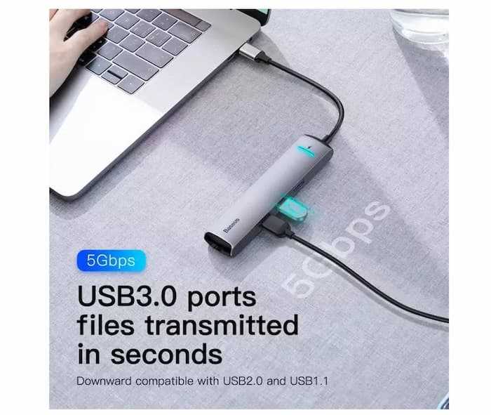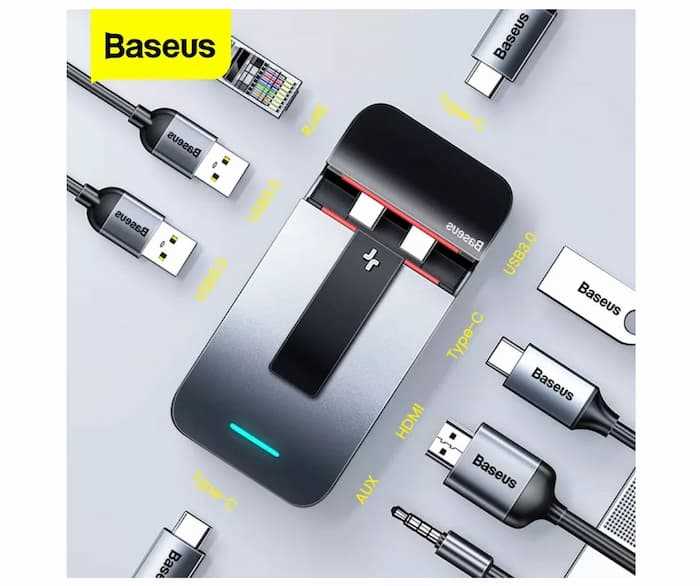 Home Networking USB Hubs Baseus 9 in 1 Type C USB Hub to HDMI for MacBook Pro, Air Thunderbolt 3, USB Splitter, Combined RJ45 Holder- Silver