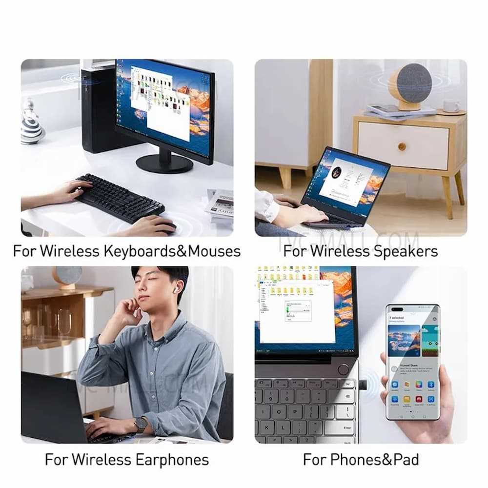 Home Networking Power Baseus BA04 Mini USB Bluetooth Wireless Adapter Plug And Play Audio Transmission Adapter (Black)