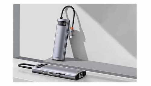 Home Networking Power Baseus CAHUB-CV0G Metal Gleam Series 8-in-1 Multifunctional Type-C HUB Docking Station - Dark Grey