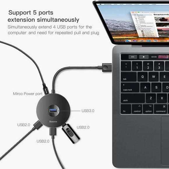 Home Networking USB Hubs Baseus CAHUB-WJ0G 6-in-1 Type-C to USB 3.0 HDMI USB Hub for iPad Pro, Macbook Pro, Computer Multifunctional 6, USB Ports, Docking Station