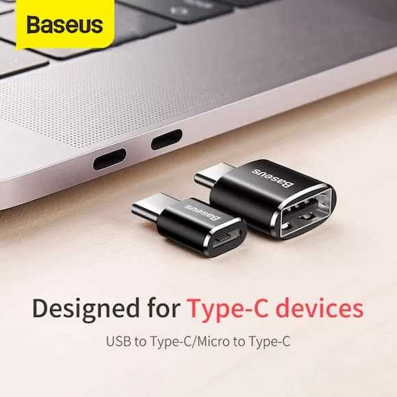 Home Networking Power Baseus CAMOTG-01 Micro USB Type-C OTG Adapter Mini USB-C Male to Female for Data Transmission- Black