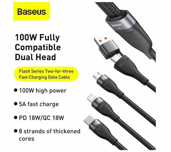 Home Fiber Optic Cables Accessories Baseus USB Type-C Fast Charging Cable 100W 3 in 2 Cable for iPhone 12 Pro Max 5A Micro for Samsung S20 Huawei P40 Xiaomi 10 Vivo X60