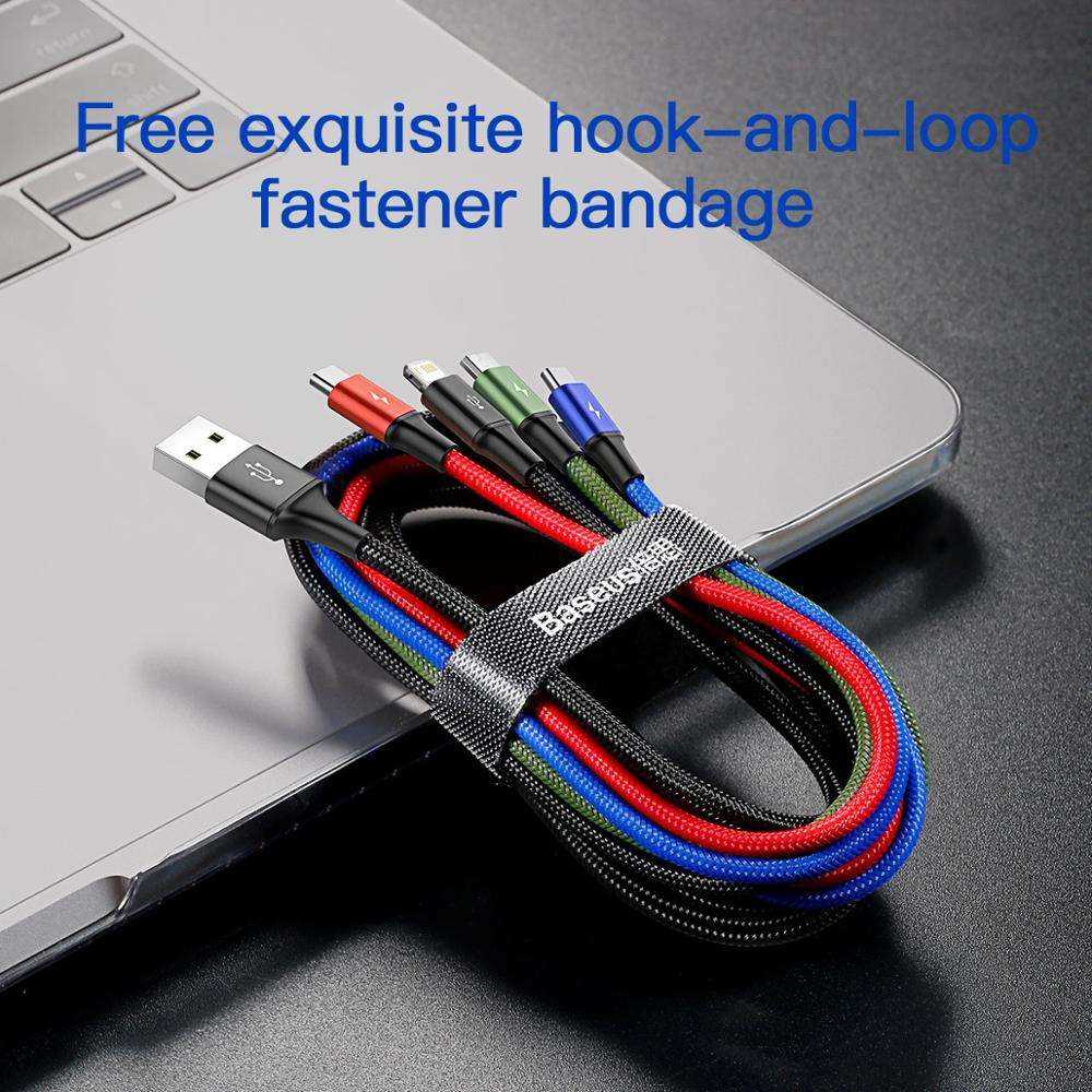 Home Networking Power Baseus USB Type C Fast Charging Cable 4 in 1 IP Micro Port For iPhone 12 Pro Max 11 XS XR Samsung S10 Xiaomi 10 Data Cable