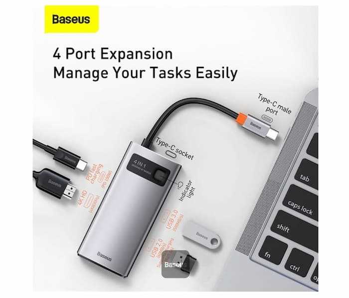 Home Networking USB Hubs Baseus USB Type C Hub HDMI USB 3.0 Multiport Dock Adapter for MacBook Laptop