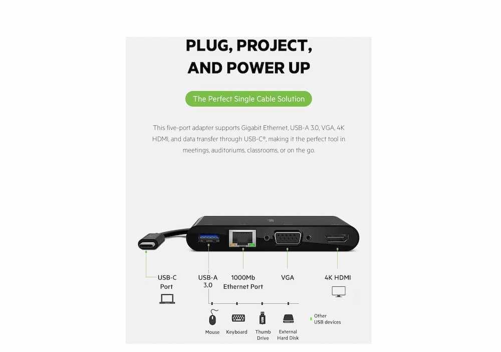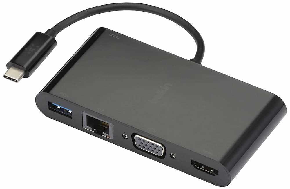 Home Networking Power Belkin AVC004btBK USB-C Multimedia Plus Charge Adapter (100W) with Tethered USB-C Cable (Black)