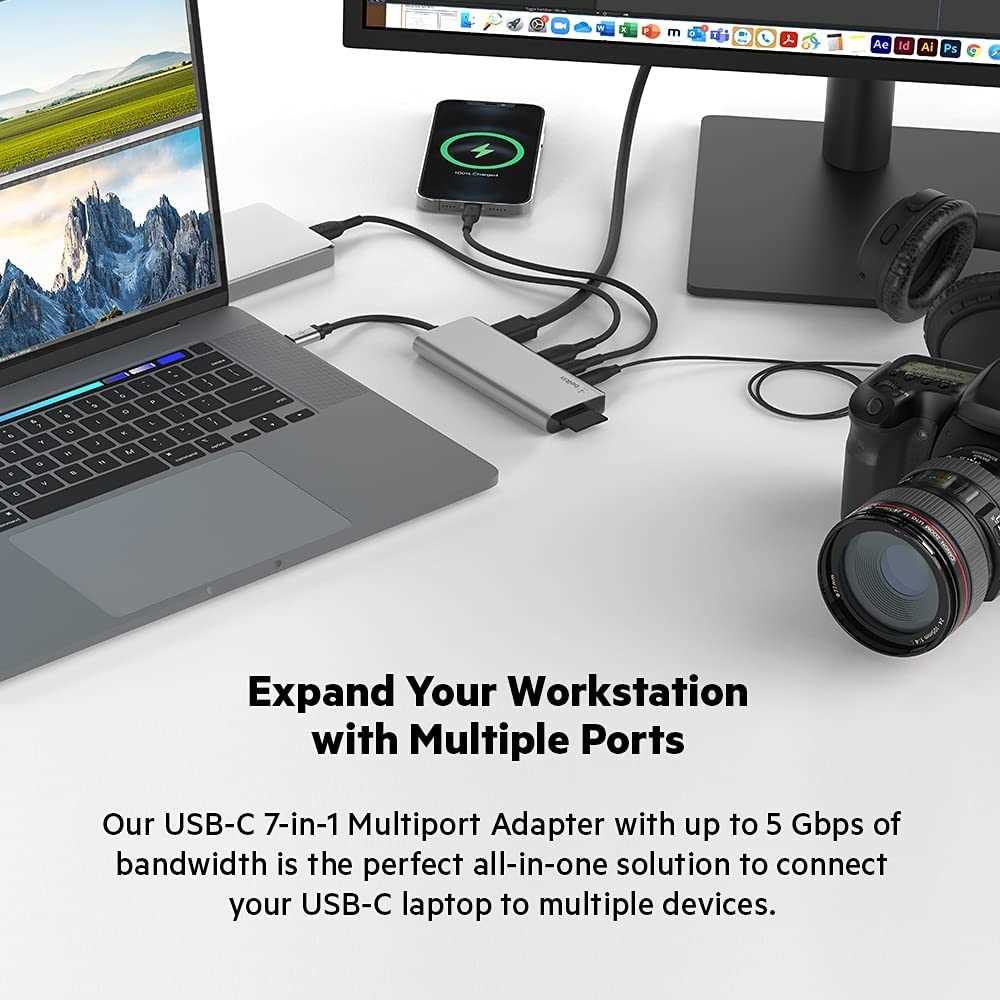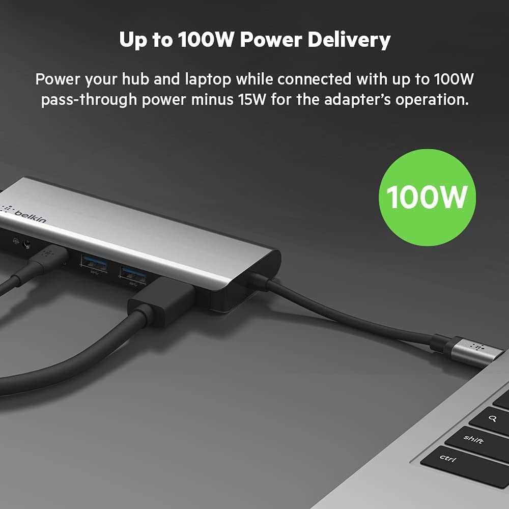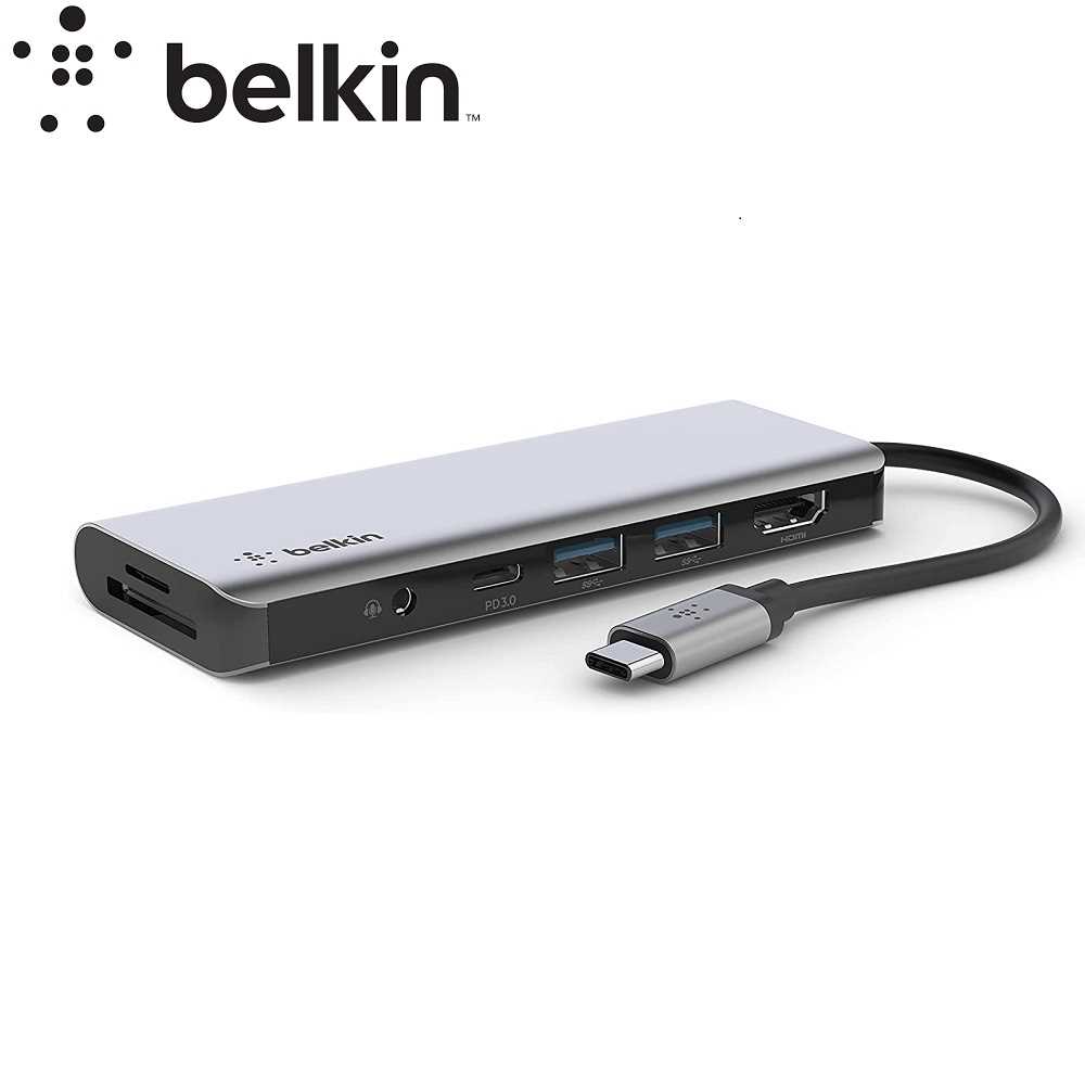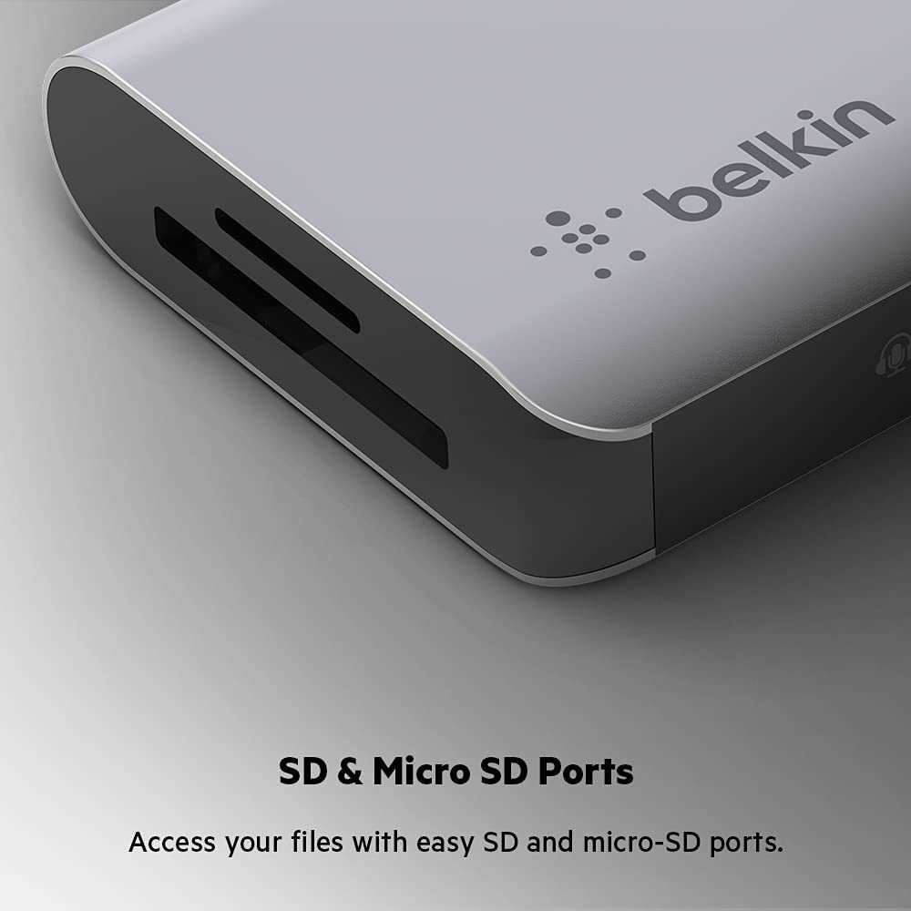 Home Networking USB Hubs Belkin AVC009btSGY 7-in-1 MultiPort USB Hub for MacBook Pro,Air, iPad Pro, XPSand More (Silver)
