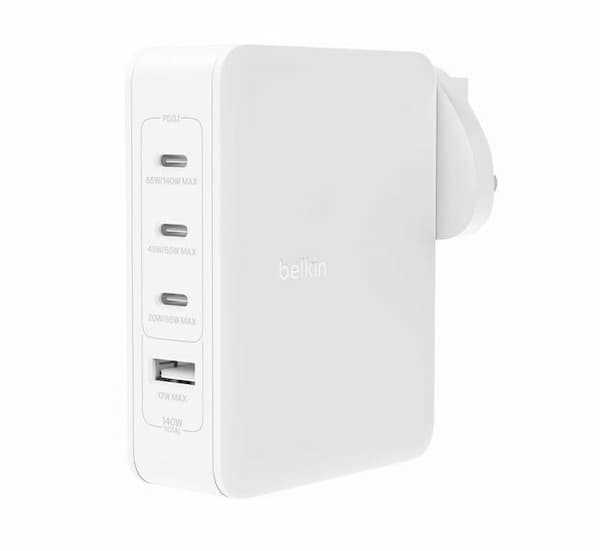 Home Electronics Adapters & Cables Belkin BoostCharge Pro 140W GaN AC Adapter - 3 USB-C & 1 USB Fast Charger, White
