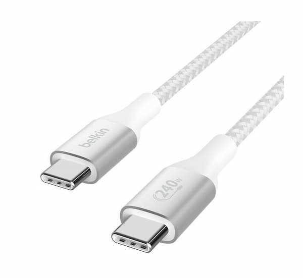 Home Electronics Adapters & Cables Belkin CAB015BT2MWH BoostCharge USB-C To USB-C 240W Cable, White - For MacBook, Chromebook, Gaming Laptop, iPad & More