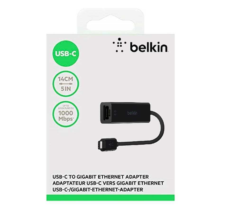 Home Networking Network Adapter Belkin F2CU040BTBLK USB Type-C to Gigabit Ethernet Adapter (Black)