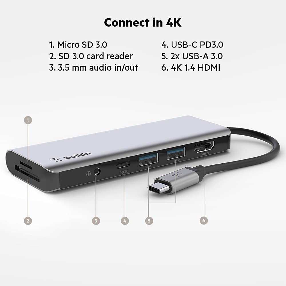 Home Networking USB Hubs Belkin F4U092btSGY Multimedia USB-C Hub - Grey